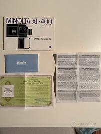 N. 1 Cinepresa 8mm Minolta XL-400 comprensiva di custodia originale a tracolla, libretto istruzioni e certificato di garanzia.
