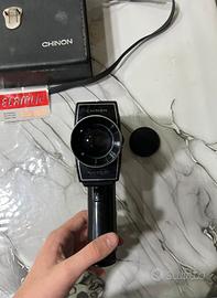 Vendo cinepresa CHINON Super 8 originale, iconica videocamera analogica d’epoca, completa di custodia originale, certificato Elami Jr. e mini treppiede Cullmann.