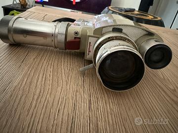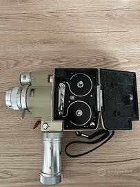 Cinepresa 8mm Minolta Zoom-8 presentata nel 1962.Zoom 10/30mm f.1.8 composto da 10 lenti a regolazione manuale.Cadenza di ripresa 12-16-24 fotogrammi al secondo.Esposimetro al CDS con scala ISO da 10 a 400.Alimentazione 4 batterie stilo da 1,5 volts.