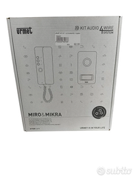 URMET 1122/601 Kit citofonico 4+N Mono e bifamialiare Miro & Mikra. Kit composto da: - Pulsantiera Mikra appoggio a parete IP44 1122/1 -1 Trasformatore 9000/230 -1 Cornetta Mìro 11501 Pulsantiera Mikra appoggio a parete IP44 1122/1 -1 Trasformatore 9000/230 -1 Cornetta Mìro 1150. Caratteristiche tecniche: -alimentazione sistema: 12v c.a. -alimentazione rete: 230vac 50hz. -dimensione pulsantiera: (h x l x p) 185 x 99 x 22 mm. -dimensioni cartellino porta nome: (h x l) 26 x 55 mm. -retro-illuminazione cartellini: led color bianco. -grado di protezione pulsantiera: ip44.