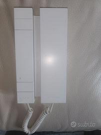 Citofono con pulsante apriporta e pulsante per servizi aggiuntivi regolazione volume suoneria modalità privacy aggancio cornetta facilitato da inserti magnetici.