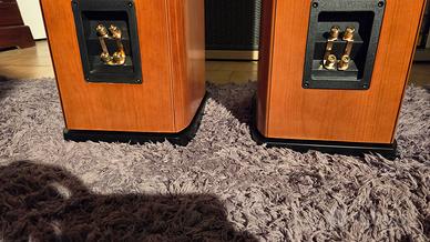 Diffusori con buona sensibilità, mobile robusto in legno impiallacciato.