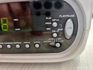 radiosveglia CLATRONIC qualità tedesca ottima radio con sintonizzatore stereo, un vero e proprio gioellino. vendo per inutilizzo. -luminosità dimmerabile -2 sveglie programmabili, -sintonizzatore FM/FM STEREO/AM -lettore CD -antenna a filo, -amplificatore PMPO da 30 W, -jack per cuffie da 3,5 mm, -colore bianco. spedizione disponibile