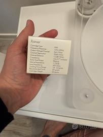 Claraudio emotion, con testina Sumiko Rainier. La testina ha veramente poche ore, vendo tutto per inutilizzo: ora uso quasi esclusivamente lo streamer e mi spiace tenere un prodotto del genere fermo. Preso da Audiocostruzioni a Carpi. Motore separato, vendo con la clamp con bolla incorporata. Giradischi ben funzionante, ben suonante ed esteticamente molto bello. Non spedisco e non ho imballi, ritiro a mano a Firenze o Mestre/Treviso. Attualmente, per prove ascolto, si trova a Firenze. Visto mi viene chiesto spesso, la linea di ascolto attuale è ampli McIntosh ed i diffusori Monitor Audio