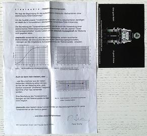 Serie limitata di testine fatte a mano e testate individualmente (vedi certificati in foto). Montava cantilever in boro e diamante "Micro HD diamond stylus" (ora denominato "Prime Line").
