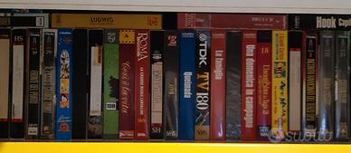 Collezione cinematografica di film cartoni animati documentari serie tv episodi registrazioni di circa 110 cassette multimediali formato nastro vinile vintage vhs.