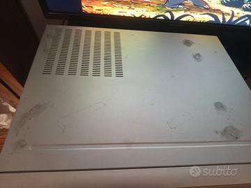 Combinato LG con videoregistratore VHS più lettore DVD. ATTENZIONE il lettore DVD non funziona l'ottica laser non legge i DVD è rotto, non funzionante. Attenzione non ha il telecomando. Il videoregistratore è funzionante, sono state fatte le foto mentre andava un cartone in videocassetta e funziona. Ha anche l'amplificatore e se si mettono 6 casse si può sentire, funzionano ( le casse non le ho e lo vendo senza). Ha anche la radio e in FM prende varie stazioni radio. È una macchina pesante e ben fatta. Può essere usata come videoregistratore il lettore DVD è ROTTO.