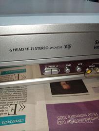 Lettore combinato con videoregistratore VHS 6 testine HI FI stereo e lettore dvd Samsung. In ottimo stato. Funzionante solo il videoregistratore VHS. Il lettore DVD non legge. Utilizzabile come videoregistratore (di alta qualità in quanto 6 testine HI FI) o per chi vuole riparare anche il lettore DVD (il laser probabilmente è da sostituire). Ritiro a mano con prova o spedizione dopo bonifico bancario o PayPal ma non con tutto subito.