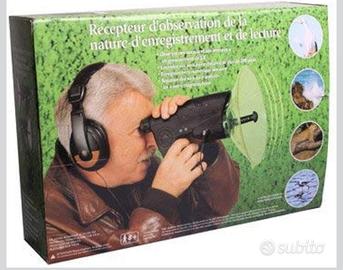Set per ascolto e registrazione con microfono direzionale e cuffie. - Microfono direzionale con parabola. - Cuffie. - Cavo di collegamento.