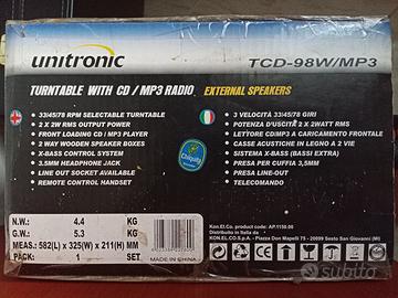 Hi-Fi compatto comprende lettore CD + giradischi 33/45 giri + radio fm etc...