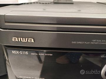 Compatto stereo Aiwa NSX S116, anni '90, a due cassette e tre piastre per cd, in perfette condizioni, completo di antenna, telecomando, istruzioni e confezione originale, vendesi causa inutilizzo.