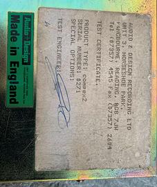 VENDO COMPRESSORE/LIMITER EXPANDER AUDIO + DESIGN RECORDING COMPEX 2 Prodotto nel Regno Unito nel 1982. Un classico limitatore / compressore / espansore vintage. Chi conosce il proprio equipaggiamento vintage saprà che si tratta di unità molto precise, utilizzate in alcuni famosi studi da alcuni dei più grandi artisti della storia. Molto raro (alcuni piccoli segni di usura). • Compressore / Limiter / Expander Mono Channel • Ingresso e uscita su XLR. • Può essere utilizzato come unità mono o collegato come coppia stereo tramite cavo patch sul retro con un interruttore "slave / master" per il funzionamento stereo. Spedizione a carico acquirente, possibile ritiro mano zona Fiumicino- Ostia (Rm) 380.7128767