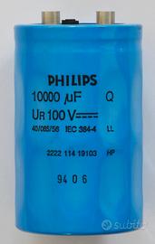 Mitici condensatori Audio a Vite Philips serie 2222 114, la migliore mai realizzata, impedenza ESR da record, I migliori per uso Audio mai realizzati, cercare famiglia 2222 114 sul web, Sarà una sorpresa per chi non li conosce. NOS, assolutamente nuovi, mai utilizzati, nella loro confezione originali. In perfetto stato di conservazione. Prima della spedizione posso rilasciare le misure delle caratteristiche con ponte di misura Rohde & Schwarz. Prezzo in base alle quantità, Fate una richiesta.