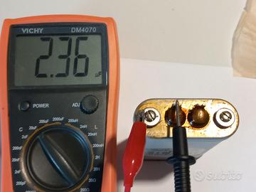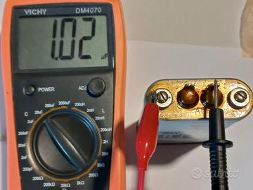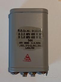 In vendita condensatori Nos Western electric. Mai saldati, solo testati. Fine anni 40. Rara occasione, i migliori condensatori mai prodotti. Dispongo di due tipologie. La prima, singolo condensatore da 2uf e 600v di lavoro, 100 euro. La seconda, condensatore doppio con 2,5uf+1uf, e 400v di tensione di lavoro, 80 euro.