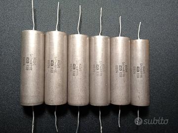 - sei K40Y-9 in carta satura di olio, contenitore in alluminio 630v 0,47uF - euro 60,00. Vendo anche singolarmente.