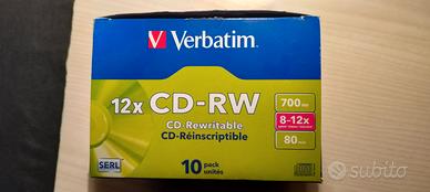 CD-RW Verbatim 12x 80 Min 700MB riscrivibili. 10 pezzi nella confezione.