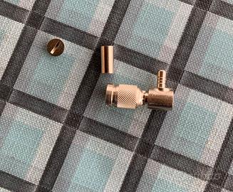 N.30 CONNETTORI RF COMPEL DIN 1.0/2.3 AD ANGOLO RETTO I CONNETTORI SONO NUOVI E COMPLETI DELLE LORO PARTI Il connettore RF DIN 1.0/2.3 viene utilizzato principalmente nei sistemi di telecomunicazione e nelle applicazioni broadcast, grazie alle sue dimensioni ridotte, alle buone prestazioni elettriche e alla sua compatibilità con cavi coassiali da 50 o 75 Ohm. È particolarmente adatto per sistemi compatti, reti cellulari, sistemi di antenne e dispositivi di trasmissione di segnali ad alta frequenza.