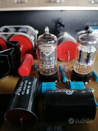 Il finale è dotato di valvole EL34 della AEG, mentre il pre è fornito di valvole Mullard ECC82 - 12 AU7.