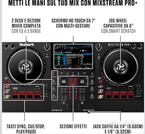 Numark Mixstream Pro+ Controller DJ con separazione stem, 2 deck, Wi-Fi, mixer, touchscreen da 7", diffusori, compatibile con Serato e Virtual DJ.