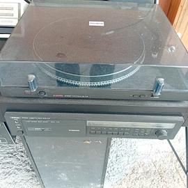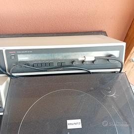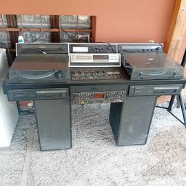 Questa è una postazione da DJ completa, un vero e proprio pezzo di storia dell'elettronica dell'Europa dell'Est, prodotta principalmente dall'azienda polacca Unitra (spesso marchiata Eltos o Fonica a seconda dei mercati) tra la fine degli anni '80 e l'inizio dei '90. È una console "all-in-one" progettata per club, bar o piccoli eventi dell'epoca, montata su un mobile rack dedicato. Composizione del Modello Dalle foto si possono identificare i singoli componenti, molti dei quali appartengono alla serie Unitra Eltos: 1.Mixer Centrale: Eltos MX623a. Un mixer stereo universale a 6 canali, cuore della postazione. 2.Giradischi (x2): Unitra Fonica GS 464 (o modelli simili della serie GS). Sono giradischi a trazione a cinghia molto diffusi in quegli anni. 3.Lettore CD: Technics SL-P100. Questo è un pezzo giapponese inserito successivamente (1986-1988), uno dei primi lettori CD di massa, molto robusto. 4.Equalizzatore: Unitra EQ 5100. Posizionato in basso al centro per il controllo fine del suono. 5.Piastre a Cassette (x2): Unitra MDS 442. Piastre a cassette stereo che completano la simmetria del mobile. 6.Unità Superiore: Include un controllo per luci psichedeliche e strobo (Psychedelic & Strobo Light Control), tipico delle console da discoteca. Quanto vale oggi? Il valore dipende drasticamente dalle condizioni funzionali. Vedendo la polvere e l'ossidazione visibile, è probabile che necessiti di una revisione completa (cinghie dei giradischi/piastre secche, potenziometri del mixer che grattano). • Pezzo Unico (Console completa): Per un collezionista di modernariato o vintage "Eastern Bloc", così com'è (da testare), potrebbe valere tra i 400€ e i 600€. Se fosse perfettamente restaurata e funzionante, il valore potrebbe salire verso gli 800€-1.000€ per via della rarità del mobile integrato. • Valore dei singoli pezzi (stima mercato usato): • Technics SL-P100: 80€ - 120€ (molto ricercato per l'estetica vintage). • Giradischi GS 464: 50€ - 80€ l'uno. • Mixer Eltos MX623a:
