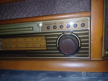 mobiletto audio dual mr4 con giradischi dal ritorno automatico, antenna radio fm, audio cassetta, cd player, mp3 su usb, scrittura su usb da file audio in mp3, casse incorporate, telecomando, pari al nuovo, con scatola ed imballo originale,