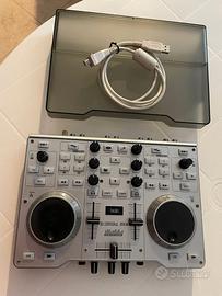 CONSOLE PER DJ HERCULES DJ Console MK4 con Scheda audio integrata. Controller a doppio banco per il mixaggio di tracce audio digitali. Puoi mixare 2 tracce musicali utilizzando i controlli di DJ Console Mk4. Ottime condizioni con cavo collegamento PC. Caratteristiche principali Audio integrato Uscita mix (canali 1-2): 2 RCA per hi-fi e mixer 1 jack stereo da 1/8" (3,5mm) per altoparlanti multimediali Uscita preview (canali 3-4): Jack da 1/4" (6,35mm) per cuffie 2 RCA per altoparlanti Ingresso microfono: 1 Presa jack da 1/4" con manopola del volume per parlare sopra la musica 2 Ingressi stereo: 2 x 2 ingressi RCA, per mixare anche sorgenti audio esterne Ingressi compatibili con: Phono (giradischi) Linea consumer (-10dBv) (per lettori MP3, ecc.) Linea pro (+4dBu) (per apparecchiature da studio e lettori CD) Linea boosted (+8dBu) (per lettori CDJ Pioneer) Dimensioni: 26,67cm x 18,54cm x 13,97cm Peso: 2,56 lb / 1,15kg Cover da trasporto Software per mix Dj VirtualDJ DJC Edition Compatibile con Windows e Mac OS