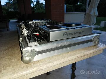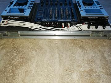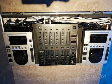 Consolle da DJ composta da 2 CDJ -100S PIONEER e da un mixer DJM-500 PIONEER con 4 canali sdoppiati line/phono +1 canale per il microfono, controllo crossfader ed effetti sonori.