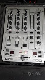 consolle dj : mixer behringeer vmx 300 dj 3 canali lettori CD con effetti djs 1100 olmnitronic valigia con ruote