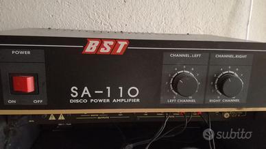 Amplificatore marca BST modello SA-110, dimensione 30x48 h 9 circa per due canali da 110 watt.