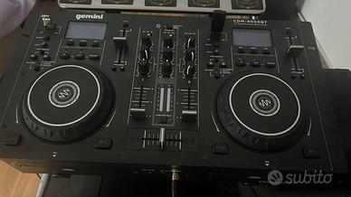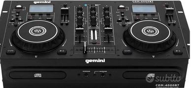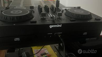 Consolle Gemini per DJ, modello 4000BT. - Lettore multimediale con Bluetooth. - Jog wheel. - Fader e potenziometri. - Ingresso USB. ( cd fisico chiavetta e bluetooth),tenuta molto bene ,2 mesi di vita. Completa di scatola e tutto,tenuta molto bene.