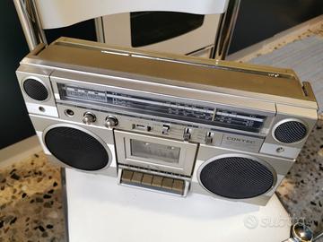 Contec Modello 8383-2S. Radio Stereo Boombox Ghettoblaster Anni 80. Misure 25x40x11 cm. Usata e funzionante ,premetto che un tasto di riavolgimento nastro casetta ogni tanto si incanta ,il tasto REC e molle , in discrete condizioni come da foto.