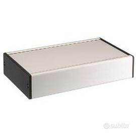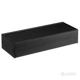 Contenitori di profilato estruso con guide per circuiti stampati a diverse altezze (distanza dal pannello frontale 12/17/22mm). Frontale intercambiabile, con film protettivo in lamiera di alluminio 1,5 mm. Lati in plastica ABS nero opaco. Disponibili (indicare il cod. art. per l'acquisto):