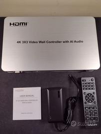 Il controller Video Wall GKRONG 4K 3x3 rappresenta la soluzione professionale dedicata alla gestione di configurazioni multi-schermo, con un processore hardware progettato per distribuire un singolo segnale HDMI su nove display indipendenti. L’architettura è basata su 1 ingresso HDMI e 9 uscite HDMI, consentendo la creazione di matrici fino a 3x3 con numerose modalità di visualizzazione preconfigurate.