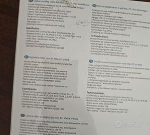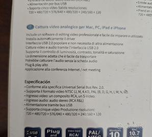 Vendo come da annuncio Convertitore Audio Video Da Analogico a Digitale Marchio DIGITNOW Con Software incluso Questa Interfaccia permette di Convertire i contenuti Dal formato analogico per intenderci Vari Video registrati su cassette da dispositivi Come Videocamere oppure registratore, convertendo tutto dall' Analogico a Digitale e quindi riproducibile su Computer Telefono ma trasferendo anche su Chiavetta USB ecc. il prezzo non trattabile non scambio