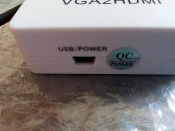 Convertitore da Vga a Hdmi usato poco , completo di alimentatore con cavo , cavo audio 3.5 mm e cavo Vga m/f . Tutto come in foto.