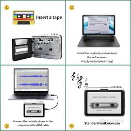 Registratore a Cassetta - riproduttore Cassetta Portatile Che Salva MP3 Audio Musica Tramite USB- Compatibile con i Computer Portatili e PC- Convertire Walkman a Cassetta.