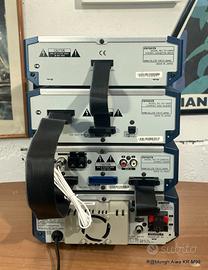 in ottime condizioni estetiche tutti i frontalini hanno solamente piccoli di segni cosi come tutte le finestre trasparenti, tutte le scritte e sono perfettamente leggibili e tutte le spie e le illuminazioni funzionano L’unico difetto riscontrabile è sul fondo dell’amplificatore che ha le fiancate in plastica che erano rotte sono state riparate e coperte con un adesivo argentato che si sposa perfettamente con il frontale