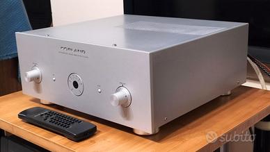 Raffinatissimo con 50 poderosi watt per canale, impedenza di carico 4/8 ohm. Valvole finali 4 x KT88 (nuove), sezione pre 2 x 12BHT 1 x ECC83. Apprezzatissimo lo stadio phono MM a tubi con 4 x 12AX7, che accetta magnificamente anche testine MC con tensione d'uscita non inferiore a 0,5 mV. Le condizioni sono +++ eccellenti +++, telecomando originale e brochure, penalizzato solo dalla mancanza dell'imballo originale ! Valuto max 50% di permuta con elettroniche a SS, diffusori da stand. NOTA BENE non rispondo a proposte senza prezzo. Annuncio attivo = disponibile. Gradito contatto telefonico, 3385209044.