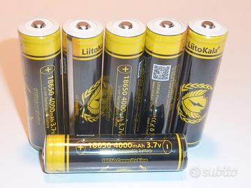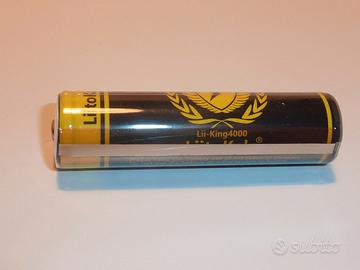 Coppia di batterie ricaricabili al litio formato 18650 originali Liitokala modello Lii-King 4000 con polo sporgente, 4000mAh, dotate di circuito di protezione PCB (disponibili anche in versione a polo piatto senza PCB). Il circuito di protezione integrato protegge la cella da sovratensione, sotto tensione e sovraccarico. Sono le batterie 18650 con la più alta capacità attualmente disponibile (tutte le capacità pubblicizzate oltre 4000mAh sono assolutamente false), ideali per torce led, radio RC, puntatori laser, ed altre apparecchiature che consentono l’utilizzo di celle al litio 18650 con PCB.