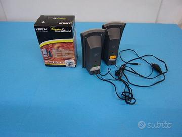 Coppia casse amplificate 220 watt p.m.p.o., NUOVE, colore grigio, collegamento a PC, notebook o altro dispositivo tramite jack stereo 3,5 mm standard, per tutte le applicazioni multimediali della casa, dell'ufficio, del lavoro, con interruttore e controllo dei volumi, nuove, mai usate, complete di imballo - [qw 5341] -