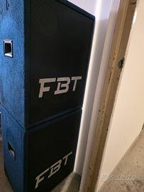 Vendo 2 casse FBT attive fate in legno quindi suono molto pulito e molto forte, ovviamente hanno il loro peso però non c'è paragone con quelle con la scocca in plastica. Io le ho usate in casa pero sono troppo forti per questo ho deciso di venderle, le vendo solo in coppia, potenza 500 wat ciascuna insieme fanno 1000 watt. Insieme cedo anche pali stattivi. Se siete interessati contattatemi.