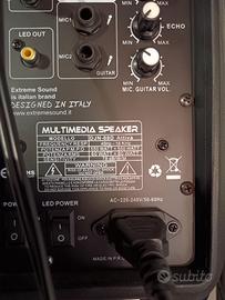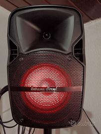 Disponibili coppia di casse usate come nuove in confezione originale. Ideali per piccole feste, karaoke, ecc. utilizzo domestico sia con cavo audio (acquistabile a parte e consigliato) che bluetooth, luci led su entrambi le casse disattivabili.