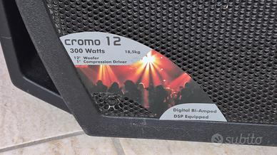 Le casse presentano qualche leggerissimo graffio superficiale dovuto al trasporto, funzionano perfettamente mai avuto problemi. DB Technologies Cromo 12, una cassa PA attiva (amplificata) di livello professionale. È un modello molto apprezzato per essere leggero ma abbastanza potente per musica dal vivo, set DJ o conferenze. Specifiche Tecniche Potenza: 300 Watt (PRG). Configurazione: Utilizza un Woofer da 12" per le frequenze medio-basse e un Driver a compressione da 1" (tweeter) per la nitidezza delle alte frequenze. Peso: 18,5 kg, il che la rende piuttosto portatile per una cassa di queste dimensioni. Digital Bi-Amped: Significa che la cassa ha due amplificatori interni separati: uno dedicato specificamente al woofer e uno al tweeter. Questo garantisce un suono molto più pulito perché gli amplificatori non devono "gestire" tutte le frequenze contemporaneamente. DSP Equipped: È dotata di un Processore di Segnale Digitale integrato, che funge da "cervello" per proteggere la cassa dal clipping (distorsione), gestire i crossover e garantire che il suono rimanga bilanciato anche a volumi elevati.