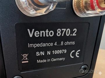 Vendo coppia di diffusori da pavimento Canton Vento 870.2 in splendida finitura laccata nera (Piano Black). Le casse sono in condizioni estetiche e funzionali assolutamente perfette, tenute con cura maniacale. Suono eccellente, dinamico e cristallino, qualità costruttiva di fascia alta Made in Germany. Sono incluse le griglie di protezione originali con comodo aggancio magnetico. Specifiche : Sistema: 2.5 vie, Bass reflex Potenza: 120 / 200 Watt Impedenza: 4...8 ohms Risposta in frequenza: 23 - 40.000 Hz Peso e Dimensioni: 23 kg cadauna / 22 x 99 x 31,5 cm Disponibile per qualsiasi prova d'ascolto. Visto il peso e l'ingombro, prediligo nettamente il ritiro a mano. Prezzo: 850,00 € Offro e richiedo massima serietà, astenersi perditempo. Contattatemi in privato per ulteriori foto o informazioni.
