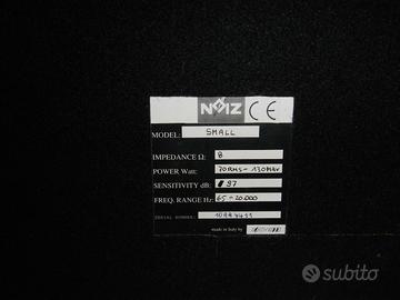 Casse Noiz Small passive, 2 vie + bass reflex 130 W (70rms) perfettamente funzionanti ed in ottime condizioni estetiche, dimensioni 40x50x40, modificate con connettori speakon e supporti per aste.