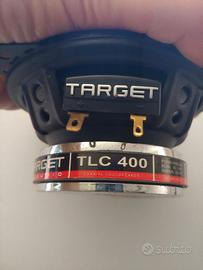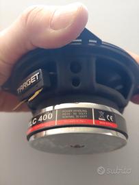 vendo per inutilizzo oppia di altoparlanti Target Audio mod TLC400, diametro 100 mm (profondità 45 mm), 90 watt picco, 30 watt nominali, cono in polipropilene placcato color titanio, piastre polari cromate, tweeter al neodimio. Disponibile a trattativa