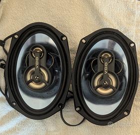 Potenza Massima: 200 Watt. Potenza Nominale (RMS): 60 Watt. Dimensioni: 6 x 9 pollici (circa 15 x 23 cm). Configurazione: Sistema a 3 vie, ideale per una riproduzione bilanciata di frequenze basse, medie e alte. Sono state testate e il suono è pulito.