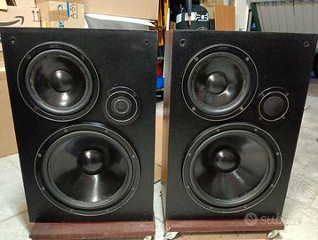Come si vede dalle Foto sono stati da poco ricondizionati e Rifatte tutte le Ribordature degli altoparlanti 8" (compresi i coni da 10" reflex) in quanto le foam con l'andare dal tempo si erano rovinate e sostituite con i nuovi bordi in gomma più performanti e duraturi nel tempo, sostituito anche 1 tweeter uguale all'originale ( i tweeter sono philips AD T8 ), Sostituiti cavetti interni e crossover, l'ottima imbottitura interna e rimasta (il potenziometro regolatore esterno e stato disabilitato) Altoparlanti da 100/120 Watt mentre i tweeter 120/150 watt, woofer e tweeter sono i suoi originali, mentre i crossover sostituiti. Misure H60cm. Prof.20cm. Larg.40cm. connettori posteriori suoi e tele originali.