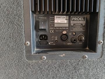 Coppia di casse amplificate Proel da 500 Watt, usate solo a casa, in ottime condizioni. Complete di cavi per audio e alimentazione.