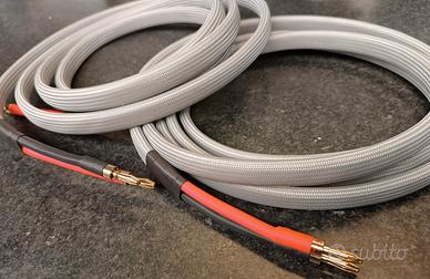 COPPIA DI CAVI DI POTENZA DI ALTA QUALITà ASSEMBLATI ARTIGIANALMENTE Cavi di potenza assemblati artigianalmente utilizzando SUPRA 6.0 4mmq di sezione e connettori HICON/NAKAMICHI. CAVI PRODOTTI SU ORDINAZIONE IN BASE ALLE CARATTERISTICHE E ALLA ESIGENZE DEL CLIENTE. SONO RIVESTITI CON GUAINA ANTITAGLIO COLORATA E SI POSSONO SCEGLIERE CONNETTORI DI VARIE TIPOLOGIE. Il SUPRA Classic 6.0 è un cavo bipolare Multifilare in Rame Stagnato OFC 5N da 6mmq estremamente flessibile che contiene multi-trefoli OFC stagnati in rame con un grado di purezza 5N SUPRA CLASSIC 2X6,0 - CAVI AUDIO HI-FI AD ALTE PRESTAZIONI Il cavo Supra Classic 2×6,0 mm² è la scelta ideale per impianti audio ad alta potenza, lunghe tratte e collegamenti dedicati ai bassi. Nonostante la generosa sezione, mantiene un’elevata flessibilità che facilita l’installazione anche in percorsi complessi. CARATTERISTICHE PRINCIPALI: Sezione conduttori: 2×6,0 mm² Conduttore in rame 5N (99,999%) stagnato, multifilare e privo di ossigeno Stagnatura per maggiore resistenza alla corrosione e migliore trasmissione del segnale Isolamento in PVC stabile e duraturo Disponibile anche nella versione ignifuga e priva di alogeni (Classic/H FRHF) per installazioni professionali VANTAGGI AUDIO: Migliora nitidezza, profondità e precisione rispetto ai cavi standard Progettato per offrire potenza e dettaglio su tutto lo spettro di frequenze Ottimo per sistemi Hi-Fi che richiedono alte prestazioni Il Supra Classic 2×6,0 mm² combina materiali di qualità e progettazione accurata per garantire un flusso di segnale stabile e un suono pulito per anni, anche in condizioni d’uso impegnative. HICON HI-BM04: CARATTERISTICHE: Materiale: metallo Cromato Contatti in lega di Rame placcati in Oro Colori identificativi: bianco e rosso Genere: banana 1 polo Connessione conduttore: a vite Diametro massimo conduttore: 4mm Diametro massimo cavo: 8.5mm CONNETTORI NAKAMICHI: CARATTERISTICHE: Colore: Argento & Oro Red & Bla